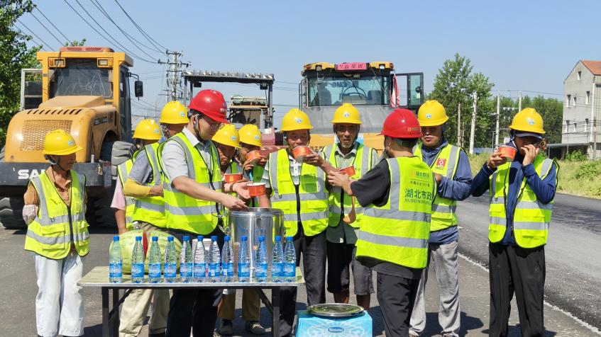 為切實(shí)做好防暑降溫工作、保障一線工人身體健康,漢川片區(qū)黨支部書(shū)記李昊、項(xiàng)目經(jīng)理王程帶領(lǐng)黨員先鋒隊(duì),深入水穩(wěn)鋪設(shè)作業(yè)現(xiàn)場(chǎng),為堅(jiān)守崗位的工人送去瓶裝水、綠豆湯、西瓜等防暑物資,將黨組織的關(guān)懷與清涼送到大家心坎上。高溫下的堅(jiān)守,是勞動(dòng)者的擔(dān)當(dāng),烈日中的關(guān)懷,是黨組織的溫度。漢川片區(qū)黨支部的黨員干部以實(shí)際行動(dòng)踐行初心使命,用貼心舉措詮釋先鋒模范作用,不僅為一線工人驅(qū)散了暑熱,更為項(xiàng)目順利推進(jìn)凝聚起強(qiáng)大合力。目前,老荷沙線項(xiàng)目正按照節(jié)點(diǎn)目標(biāo)有序推進(jìn),全體建設(shè)者正以飽滿的熱情沖刺施工任務(wù)。