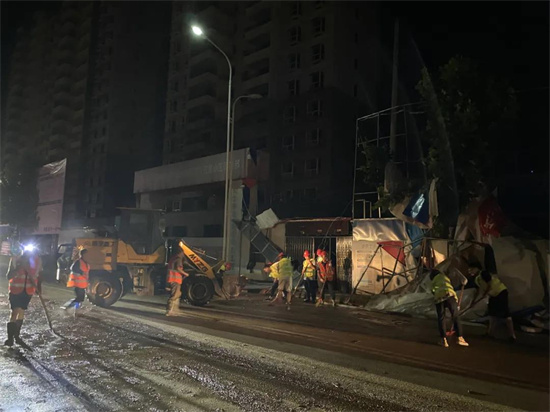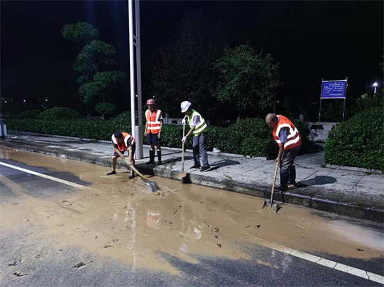 搶險現(xiàn)場,突擊隊員們斗志昂揚,有人鏟土泥,有人用水槍沖掃,有人分發(fā)瓶裝水,有人協(xié)調現(xiàn)場運輸車輛,分工協(xié)作,緊密配合。搶險清掃工作一直持續(xù)到凌晨1點30分,終于完成洪災路面的清掃工作,保證了人民群眾的正常出行,得到了縣委縣政府的充分肯定。
