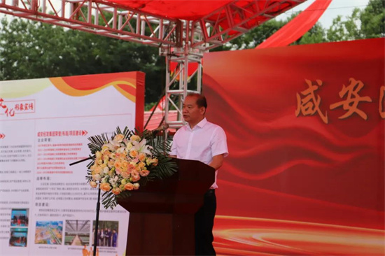 開工儀式上,湖北工建集團(tuán)總工程師、基礎(chǔ)設(shè)施公司黨委書記、董事長(zhǎng)肖仲華作表態(tài)發(fā)言。